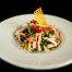 somon, mix de salată, fulgi de migdale, roșii cherry, castraveţi, dressing